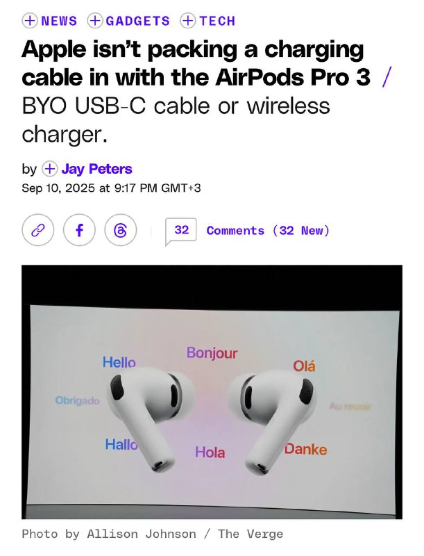 Компания Apple представила новые полностью беспроводные наушники AirPods Pro 3. Главным сюрпризом для покупателей стало отсутствие в коробке кабеля для зарядки.