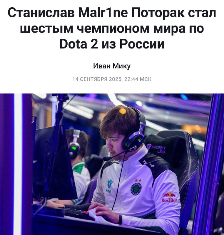 Российский киберспортсмен Станислав «Malr1ne» Поторак из Можайска стал триумфатором одного из самых престижных турниров в мире киберспорта — The International по Dota 2. Вместе со своей командой Team Falcons он одержал безоговорочную победу, забрав главный приз соревнования.
