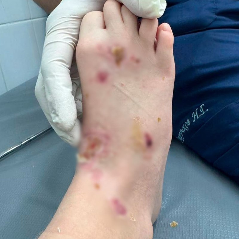 Первая помощь на курорте и стандартные кремы против ожогов не дали никакого результата. По возвращении семьи в Россию состояние мальчика резко ухудшилось. У него начался некроз тканей, и врачи диагностировали реальную угрозу повреждения сухожилий.