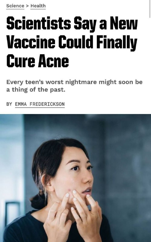 Американские исследователи сообщили о разработке инновационной вакцины для борьбы с акне. В основе препарата лежит технология матричной рибонуклеиновой кислоты (мРНК), аналогичная той, что использовалась в передовых вакцинах против COVID-19.