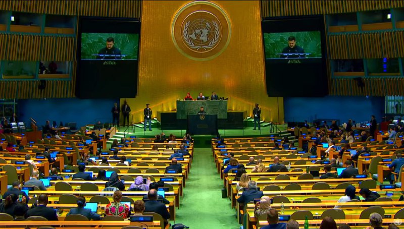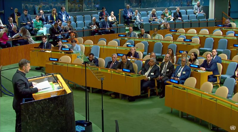 Выступление Владимира Зеленского на заседании Генеральной Ассамблеи ООН прошло при практически пустом зале. Президент Украины заявил, что мирового осуждения недостаточно для сдерживания агрессии России.