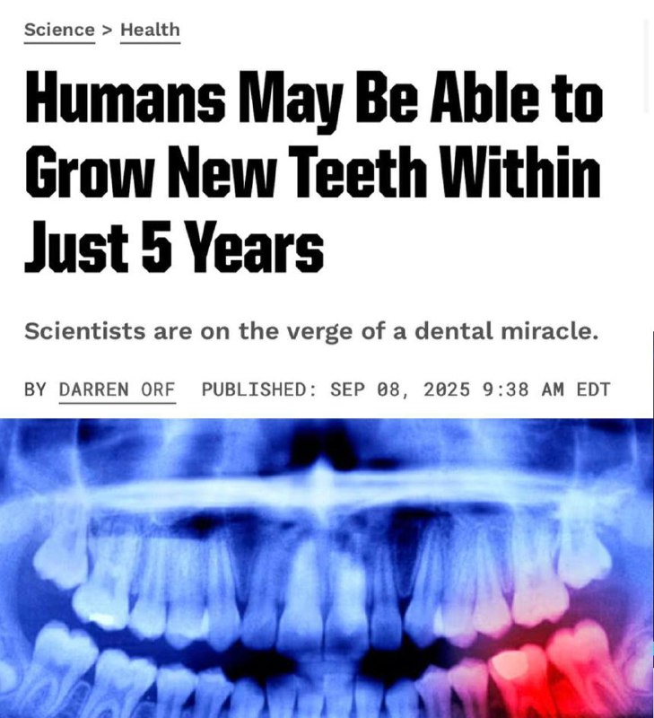 Если всё пойдёт по плану, уже к 2030-му люди смогут отращивать зубы с эмалью и нервами — без походов к стоматологу.