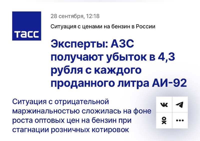 Эксперты объясняют эту ситуацию критическим разрывом между оптовыми и розничными ценами. В то время как закупочные цены на топливо продолжают уверенно расти, розничные цены на заправках остаются замороженными, что полностью съедает маржу операторов.