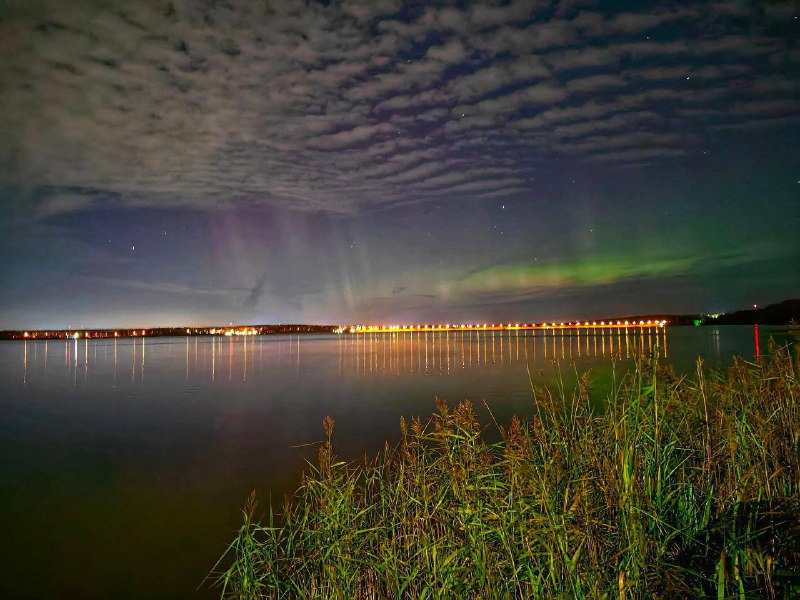 Яркое зелёно-фиолетовое свечение ночного неба было зафиксировано в нескольких населённых пунктах: