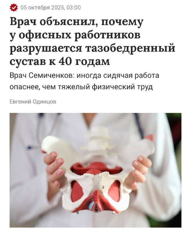 Медицинские специалисты бьют тревогу: у людей, занятых сидячей работой в офисе, тазобедренные суставы начинают деградировать уже к 40-летнему возрасту. Основная причина проблемы кроется в образе жизни, который ведет большинство сотрудников.