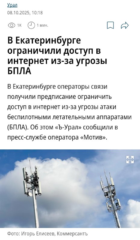 Операторам связи разослали приказ обрубить коннект из-за угрозы атаки БПЛА