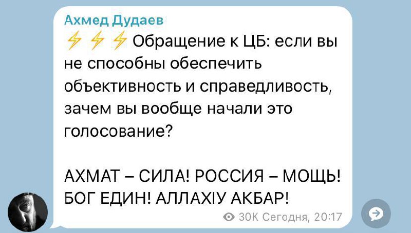 Мы наблюдаем за ходом голосования и видим, как меняются условия. Это вызывает серьёзные вопросы, — заявил Дудаев.