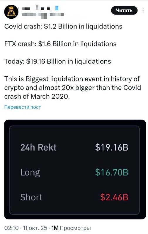 За последние 24 часа мировой криптовалютный рынок пережил беспрецедентное падение, которое привело к крупнейшей ликвидации активов за всю его историю. Общая сумма принудительно закрытых позиций трейдеров достигла ошеломляющих масштабов.