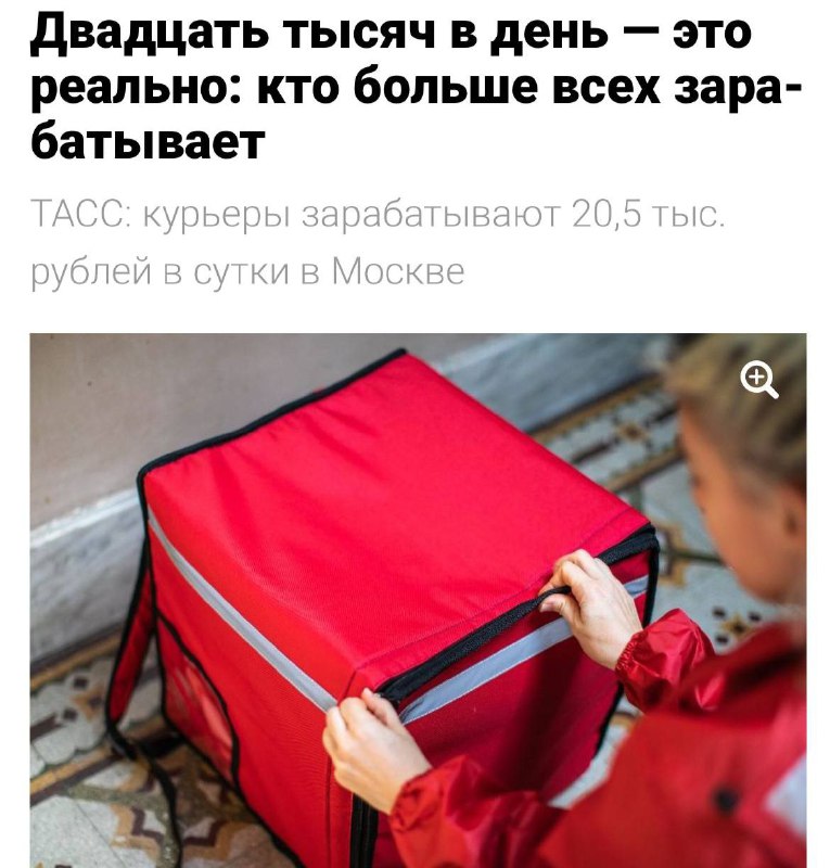 Курьеры в Москве зарабатывают более 20 тысяч рублей в сутки