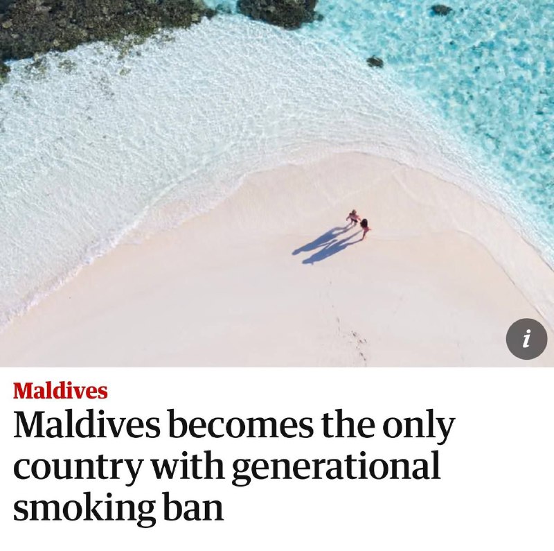 Власти Мальдивских островов объявили о введении беспрецедентной меры, направленной на создание первого в стране свободного от табака поколения. Согласно новому закону, запрет на продажу и употребление табачных изделий будет действовать для всех граждан, родившихся после 1 января 2007 года.
