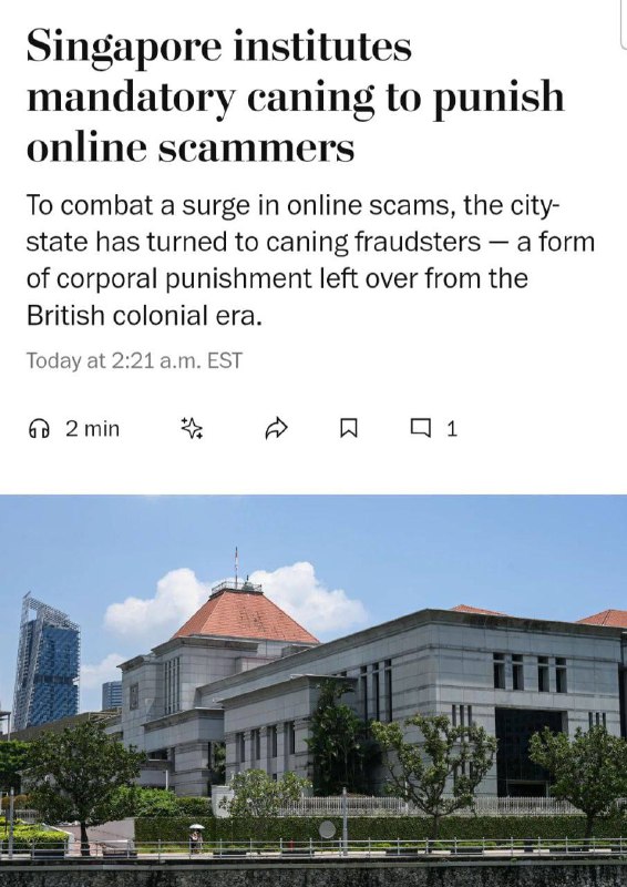 Власти Сингапура приняли решение о введении телесных наказаний для интернет-мошенников. Эта жесткая мера является ответом на резкий рост числа киберпреступлений в последние годы.