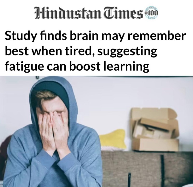Новое исследование показало, что усталость может быть полезна для процессов обучения. Учёные установили, что утомлённый мозг запоминает информацию гораздо эффективнее, чем отдохнувший.
