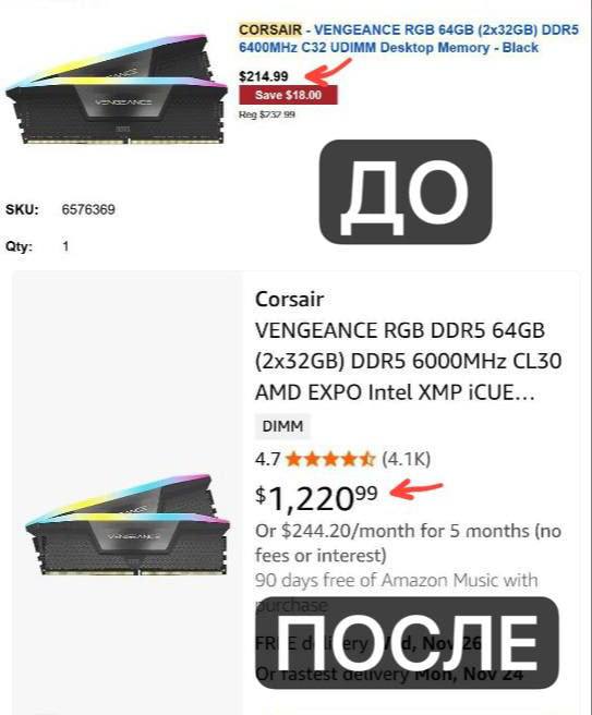 Рынок комплектующих для компьютеров столкнулся с беспрецедентным ростом цен на оперативную память. Модуль объемом 64 ГБ, еще недавно считавшийся относительно доступным, теперь оценивается в 100 тысяч рублей.