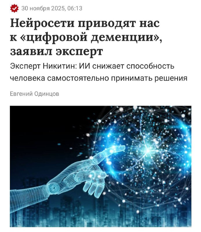 Эксперты предупреждают о рисках цифровой деменции от нейросетей