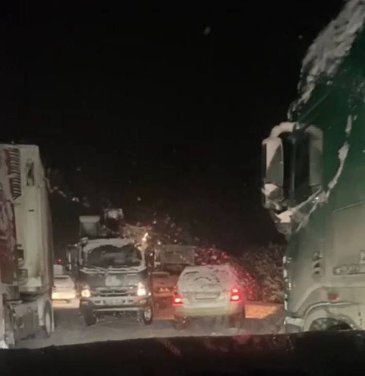 По предварительной информации, движение легкового транспорта заблокировали фуры. Тяжелые грузовики не смогли преодолеть подъем, что привело к полному коллапсу на этом участке дороги.