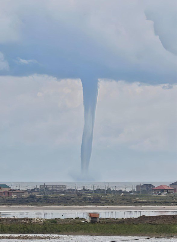 В четверг, над акваторией Каспийского моря в районе города Каспийска (Республика Дагестан) местные жители стали свидетелями впечатляющего и редкого для этого региона природного явления — огромного водяного смерча.