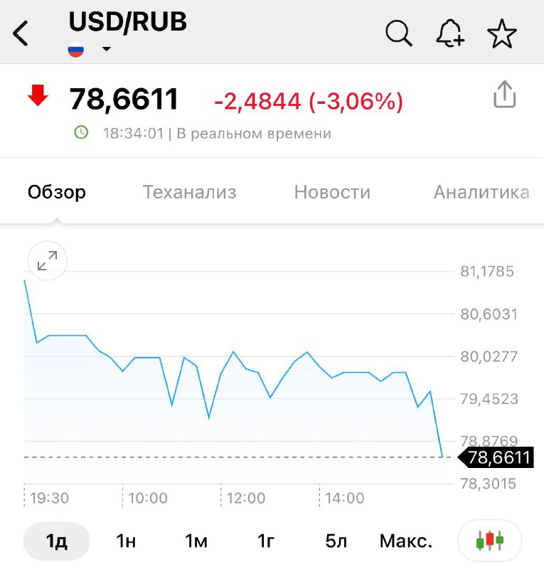 Американская валюта на Московской бирже продолжила снижение, достигнув отметки 78,6 рубля. Это минимальное значение за последние несколько недель.