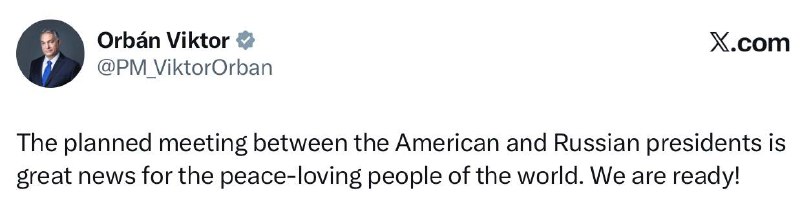 Премьер-министр Венгрии Виктор Орбан заявил о готовности принять у себя переговоры между президентом США Дональдом Трампом и российским лидером Владимиром Путиным. Он назвал эту инициативу важным шагом на пути к миру.
