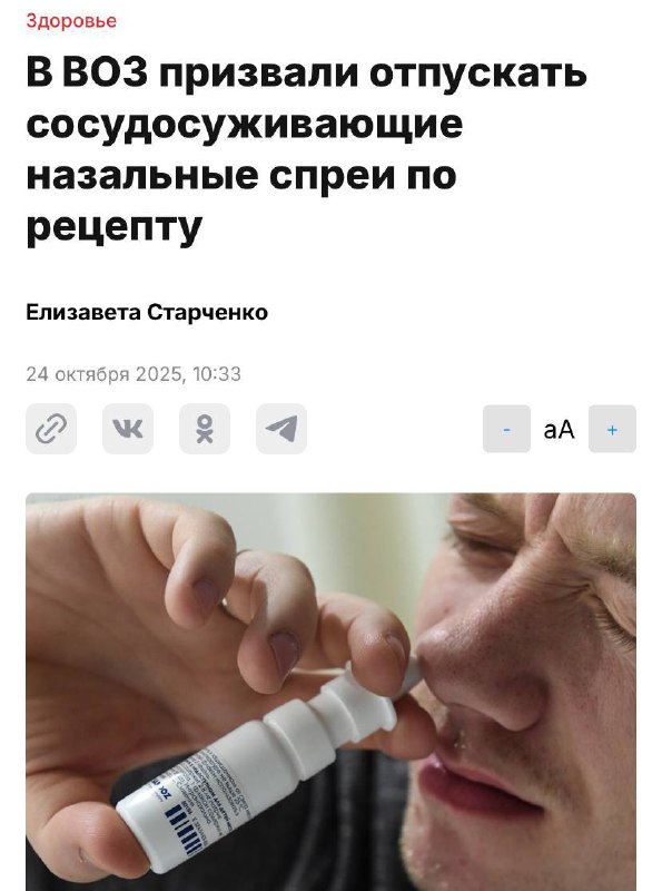 Медики объясняют такую позицию серьезными рисками для здоровья. Длительное использование подобных спреев приводит к развитию медикаментозного ринита — сильной зависимости от препарата.