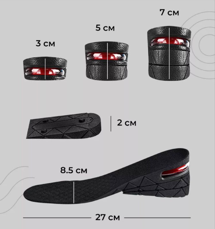Одна пара таких стелек, стоимостью около 300 рублей, позволяет приподнять пятку на 2,5–5,5 сантиметров. Это не только делает владельца выше, но и визуально вытягивает линию ноги, делая её стройнее.