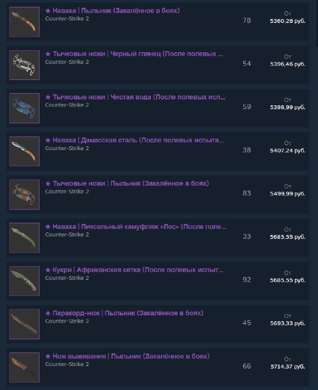 Стоимость ножей в Counter-Strike 2 резко снизилась после того, как разработчики начали снимать торговые ограничения с игровых предметов. Падение цен достигло 80% для некоторых популярных моделей.