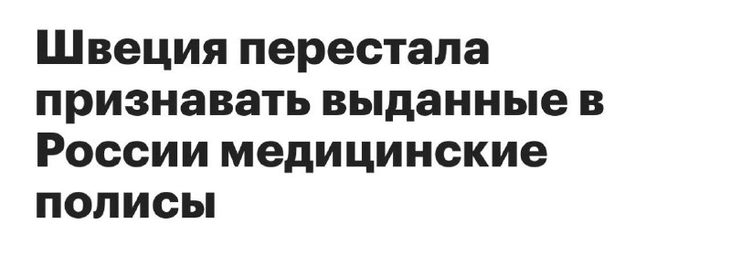 Согласно официальным разъяснениям шведской стороны, в свете действующих санкционных ограничений российские полисы не рассматриваются как достаточная мера медицинского обеспечения путешественника